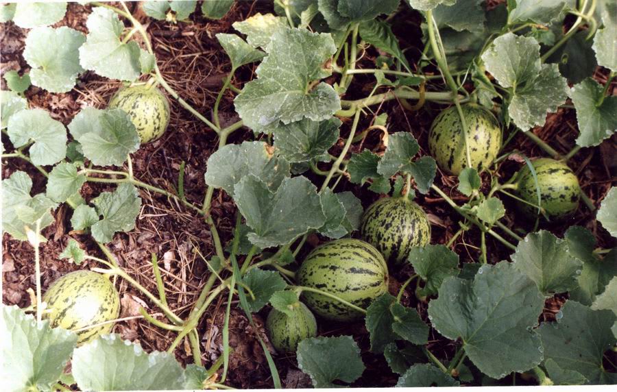«Бахча», где растут арбузы и дыни, – это грядка, находящаяся с южной стороны теплицы, покрытая полиэтиленовой плёнкой сверху и чёрной плёнкой по поверхности почвы. Длина грядки 10 метров. Растения высаживаются в отверстия, сделанные  в плёнке через метр, всего десять штук дынь или арбузов. Посадку  можно и  уплотнить, высаживая по два растения в одну лунку или выращивая по два саженца в одном горшке. Чёрная плёнка на поверхности грядки создаёт благоприятные условия для роста корневой системы, препятствует появлению сорняков, сохраняет влажность почвы, а значит, помогает формированию хорошего урожая. Причём плоды не имеют контакта с влажной поверхностью, в результате чего не подвергаются воздействию грибковых заболеваний и хорошо сохраняются при дозаривании.