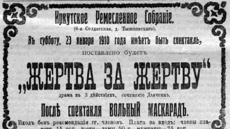На фоне «бракоразводных процессов» в Общественных собраниях обозначилась трещина и в Ремесленном клубе. Слухи об этом начали ходить ещё с конца прошлого, 1909 года, но верить в них не хотелось: цеховики и объединились-то только пять лет назад, поставив очень скромную цель: иметь место для общения с людьми своего круга. Правда, газетчики этому не поверили и стали ждать «скорой смены декораций». «Нам известны некоторые из ремесленных клубов, возникавшие с симпатичною целью объединения сословия цеховых в одну семью. Но ныне влачащие жалкое существование по причине появления постороннего элемента, захватившего бразды правления и резко изменившего физиономию клуба, обратившего его не то в кафешантан, не то в игорный дом», – беспокоились «Иркутские губернские ведомости».