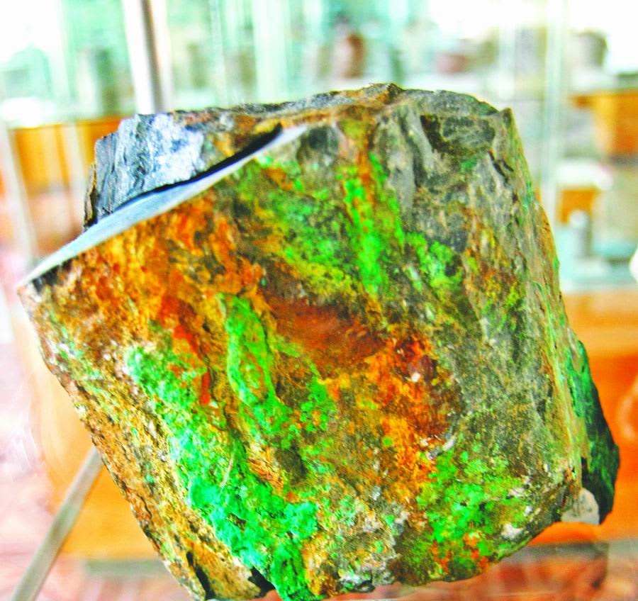 Тут же Адель Васильевна показывает образцы урановой руды – небольшие куски породы, которые, на обывательский взгляд, смотрелись бы невзрачно, если бы не чёрные прожилки настурана – минерала, содержащего сырьё для атомной энергетики или ядерного оружия. «Условно говоря, все урановые минералы либо чёрные, либо жёлтые, либо оранжевые, либо зелёные, – продолжает импровизированную лекцию заведующая музеем «Сосновгеологии». – Скажем, если породу насыщает бета-уранотил, то будут жёлтые вкрапления, если торбернит – зелёные». В общей сложности, кстати, насчитывается около двух тысяч минералов урана. Только при изучении Стрельцовского рудного поля были открыты три из них: баураноит, кальций-ураноит и метакальций-ураноит.