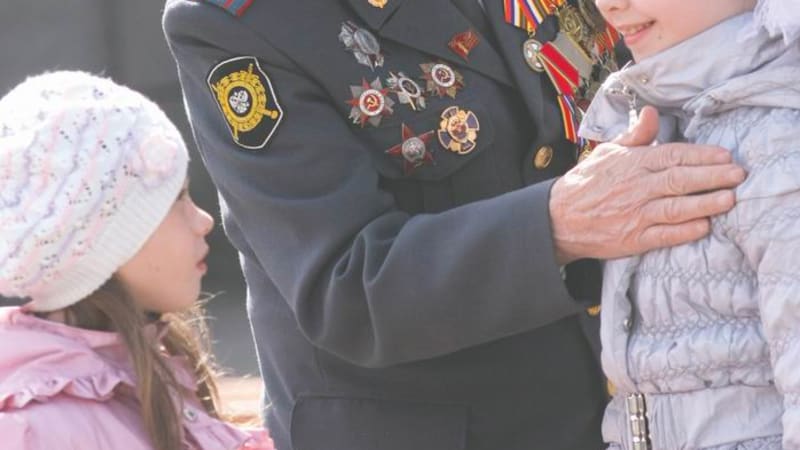 – Конечно, конечно, – улыбается ветеран, и видно, как радостно ему от этого внимания. С другой стороны тут же встаёт папа с маленьким сыном, ещё какие-то подростки, и вот уже фото готово. А самый шустрый малыш вцепился в руку дедушки и не хочет отпускать. Ему интересно происходящее: и звуки духового оркестра над площадью, и люди в военной форме, и ветераны «при параде» – с цветами и наградами на своих лучших пиджаках.