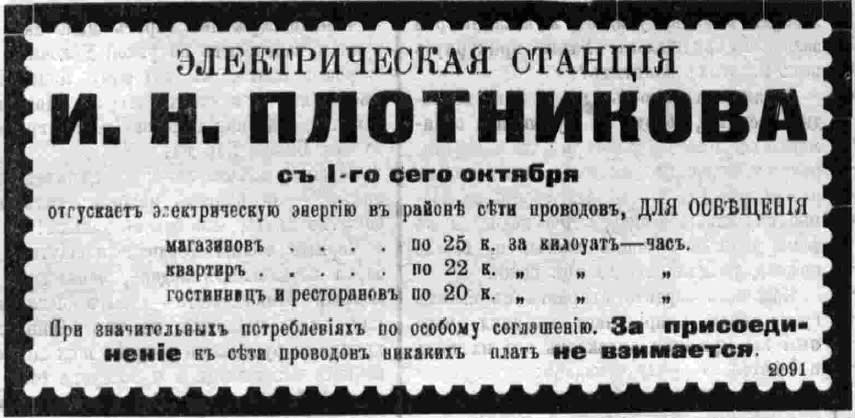 В смету нынешнего, 1910 года был заложен доход от электростанции в сумме 130 тысяч рублей, но до этой заветной цифры пока ещё было страшно далеко. Из доходных статей приходилось исключать стоимость освещения городских зданий. Не менее чем в 40 тысяч рублей в год должно было обходиться уличное освещение, один только памятник императору Александру III требовал света на 500 рублей.