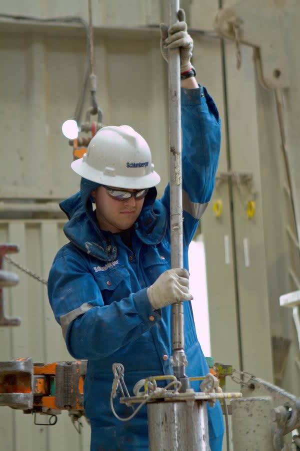 Следуя указаниям, журналисты проследовали на буровую. Там всё было как в телесюжетах и фильмах: несколько серьёзных мужчин в разноцветной спецодежде работали в центре площадке – вокруг бурильной колонны. По их словам, длина добывающих скважин на Верхней Чоне равна 2,7 километра. Все скважины с горизонтальными окончаниями, в среднем длина горизонтального ствола – 500 метров. На бурение отводится 23 дня (раньше было 40–50 дней). Сроки сократились за счёт использования современных технологий: новых двигателей, углеводородного раствора, алмазных долот. Последние, к слову, обходятся бурильщикам недёшево: долото стоит в среднем 1,5-2 млн. рублей, а на одну скважину требуется пять штук разного размера.