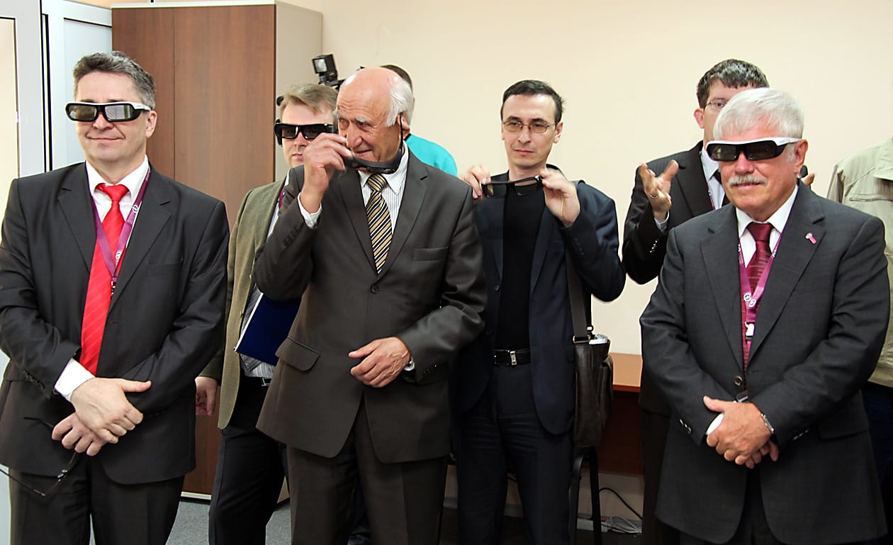 Несколько минут спустя доктор Матиас Кебиш из Университета Отто фон Герике демонстрировал то, что уже смонтировано в лаборатории моделирования и оптимизации интеллектуальной энергосистемы. В небольшой комнате уместились два монитора, на одном из которых можно было увидеть презентацию, повествующую о технологии smart grid. Рассмотреть картинки и надписи на экране можно было в трёх измерениях – тут же на столике лежали беспроводные стереоскопические очки. Померить их успели все собравшиеся, но тем, кто стоял вплотную к экрану, немного не повезло: из-за близкого расстояния изображение казалось слегка расфокусированным.