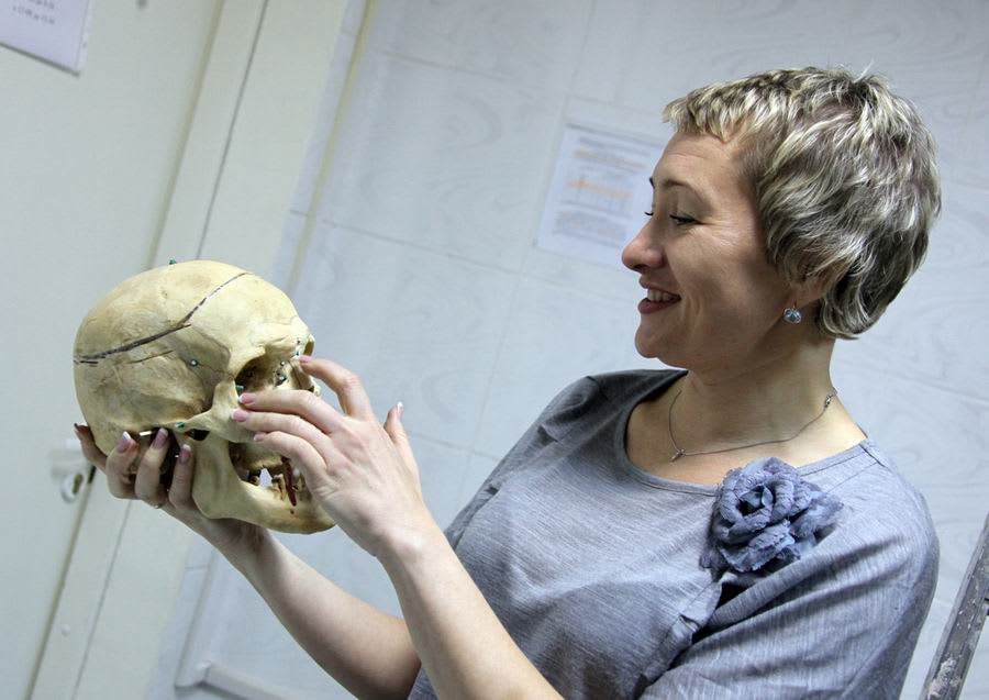 – Вот, например, привезли для реконструкции череп неизвестного. Обнаружен на берегу Ангары в Боханском районе, в Святой пади. Мы определили, что это череп мужчины в возрасте 35–50 лет. По состоянию зубов можно сказать, что он много курил и не следил за своим внешним видом – видите, нескольких зубов не хватает.