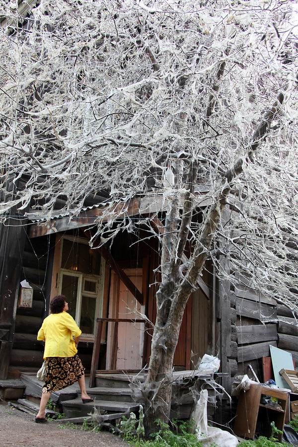 Впервые в современной истории иркутяне заметили, что дело неладно, ещё в позапрошлом году. Однако тогда поражение вредителем цветущих яблонь было точечным и не вызвало такой бурной реакции, граничащей с отвращением и страхом. В прошлом году паутина окутала кустарники целых микрорайонов, а в этом сезоне серые лохмотья свисают с деревьев уже по всему городу. Гусениц так много, что они не умещаются в своих паутинных гнёздах на яблонях и расползаются вокруг, по соседним домам и земле. На глазах корреспондента «Иркутского репортёра» несколько прохожих и велосипедистов путались в паутине, свисающей с кустарников, а одна из женщин так испугалась, попав в тенёта, что упала прямо на асфальт и подняться смогла только с посторонней помощью.