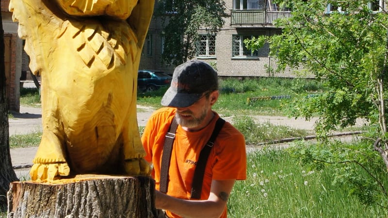 – Клён был серьёзно болен, и ему уже ничем нельзя было помочь. Но просто убирать дерево не хотелось. Подумал. Созрела идея, – рассказывает живущий в соседнем подъезде Сергей Зиннер — известный в регионе мастер ледовой, песчаной и снежной скульптуры. – Решил рискнуть и попробовать вырезать скульптуру не из просушенного материала, а из живого дерева. Так не принято, но у этого решения есть свои плюсы: готовую скульптуру тихо и быстро не украдёшь – её можно разве что отпилить или выкорчевать.