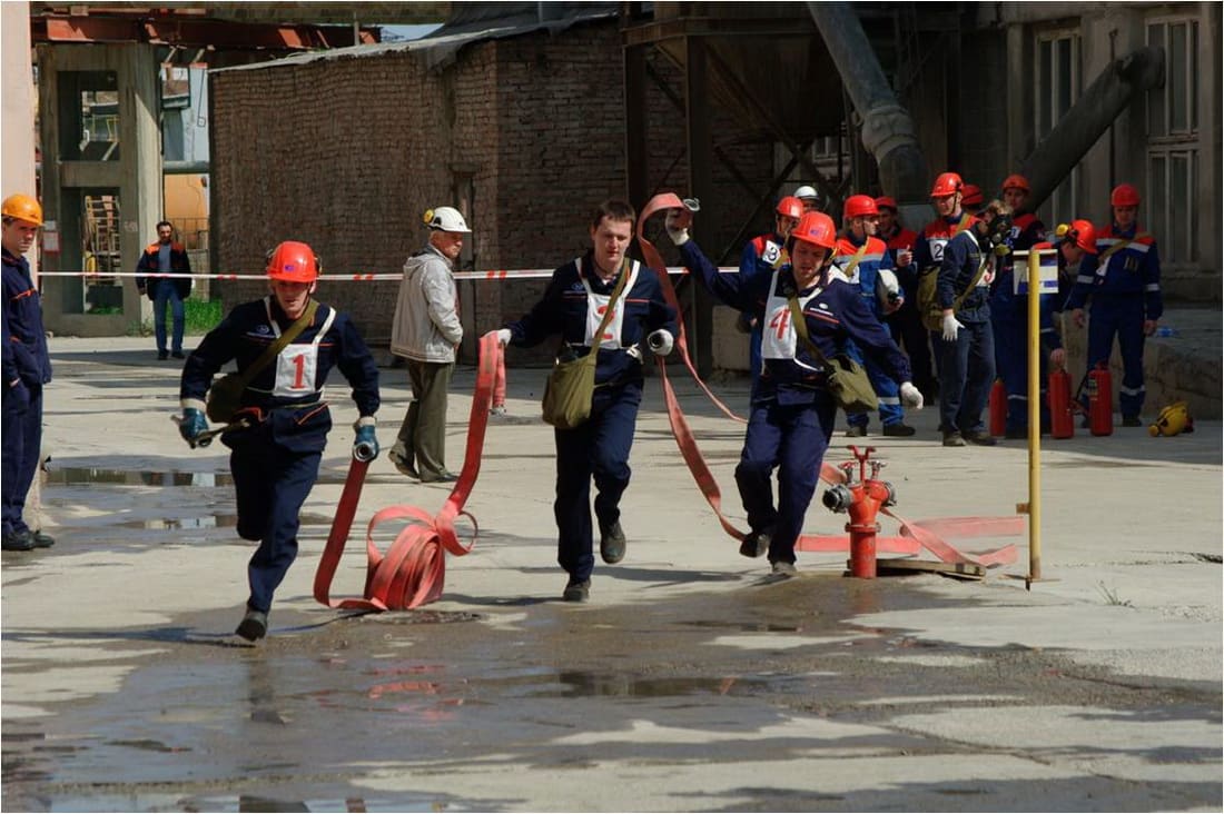 Соревнования добровольных пожарных формирований проходили в три этапа. На первом этапе нужно было правильно сообщить о месте возникновения пожара в пожарную охрану, на втором – произвести тушение противня с горючей жидкостью огнетушителем, а на третьем развернуть от пожарного гидранта рукавную линию, преодолеть препятствие и из пожарного рукава со стволом, в который подаётся вода, сбить струёй воды мишень, находящуюся на стойке.