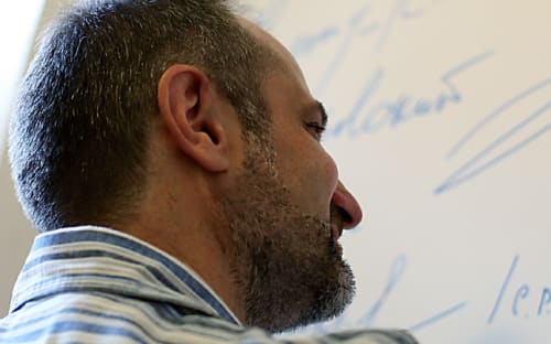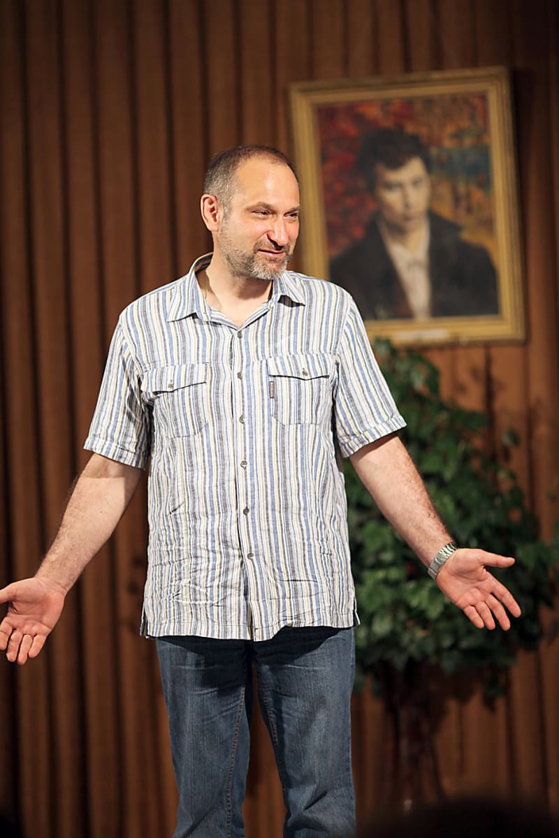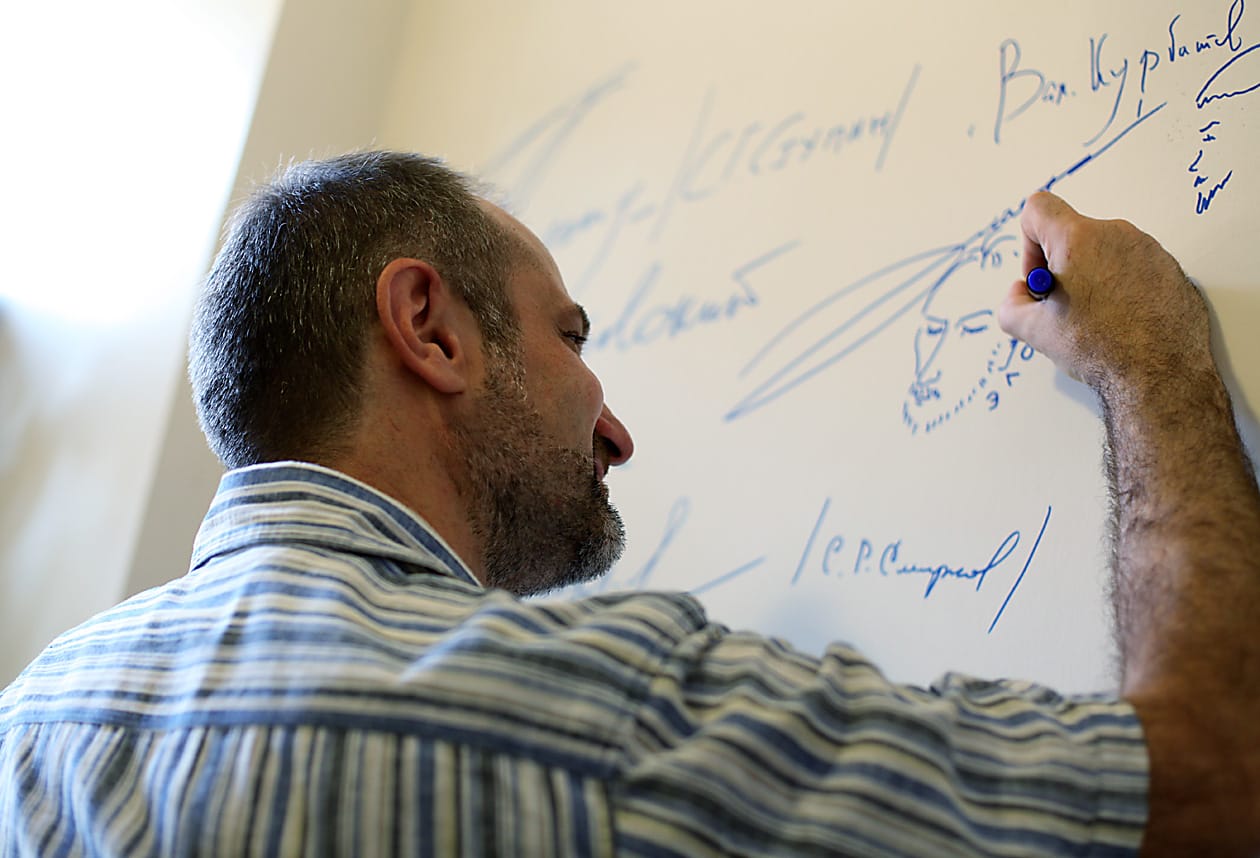 Иркутский художник Сергей Элоян рисует на стене свой профиль и ставит автограф. В Культурном центре имени Александра Вампилова новая традиция – расписываться на стене. Накануне это сделал литературный критик Валентин Курбатов, до этого – декан факультета филологии и журналистики ИГУ Анатолий Собенников и ещё несколько человек. Повод расписаться у каждого свой. Для Сергея Элояна им стало открытие его персональной выставки рисунков, которыми проиллюстрировано новое издание повести Валентина Распутина «Прощание с Матёрой». Книга была презентована в Иркутске на прошлой неделе. Интересно, что это событие совпало с другой круглой датой: выпущенное к юбилею Валентина Распутина, которому 15 марта этого года исполнилось 75 лет, новое издание повести было представлено иркутской публике в Культурном центре имени Александра Вампилова. Его официальное открытие намечено на 19 августа этого года, когда драматургу также исполнилось бы 75 лет. Исполнительный директор Фонда Вампилова Галина Солуянова уверена, что в этом совпадении есть что-то символическое, так как Распутин и Вампилов «были в большой человеческой и творческой дружбе».