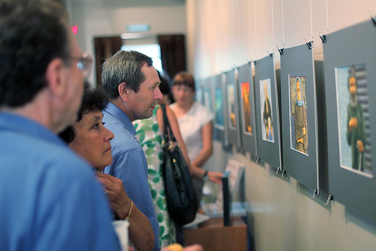 Поэтому неудивительно, что большинство представленных на выставке рисунков портретные. Хотя даже там, где Элоян рисует дерево, в нём просматривается аллегорическая аналогия с судьбами отдельных людей. Всего на выставку попало 17 рисунков. Все они выполнены в акварельной технике. Более полно галерея изображений представлена в самом издании. Автор рисунков уверен: несмотря на то, что полиграфия немного меняет первоначальное качество изображения и не позволяет оценить в полной мере особенности художественной работы, именно в книге все рисунки смотрятся наиболее органично, так как находятся в прямом контакте с текстом. Художник признался, что сам «расставлял» изображения по тексту повести. Принцип, по его словам, достаточно простой: главы разделяются картинками, каждая из которых относится либо к концу предыдущей, либо к началу следующей.