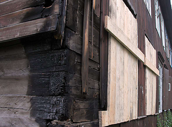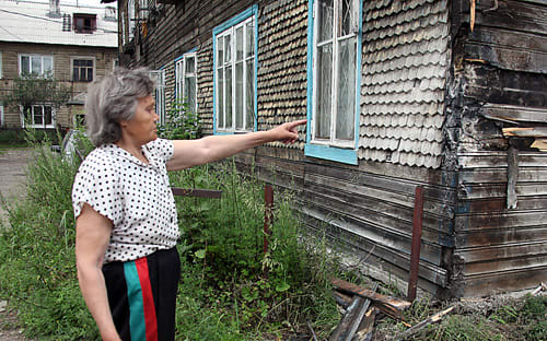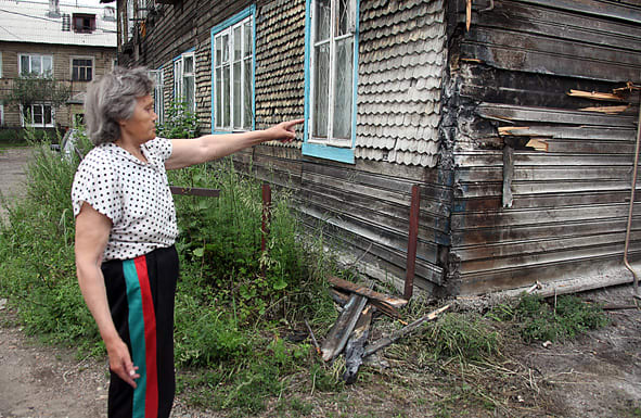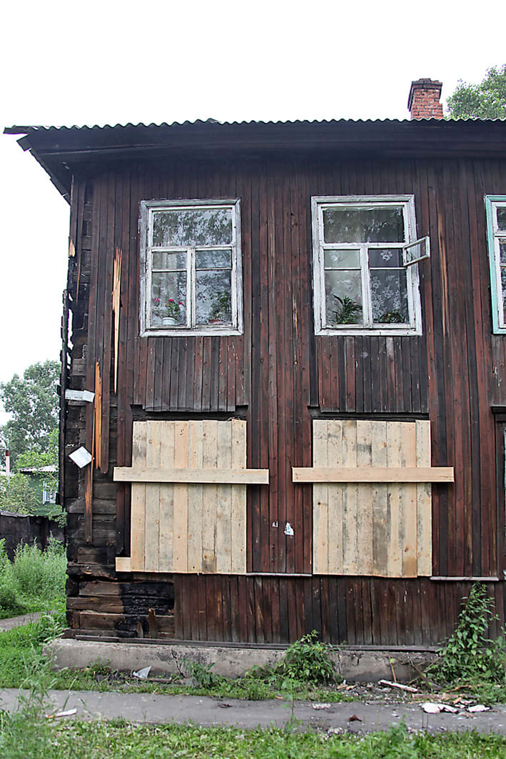 Жительница пострадавшего дома по улице Черского пенсионерка Галина Пупышева говорит, что дом построили в 1941 году литовские переселенцы, делали его наскоро, никто не рассчитывал, что он простоит хотя бы пару десятилетий. А когда брёвна стали гнить, их просто поверху обшили вагонкой.