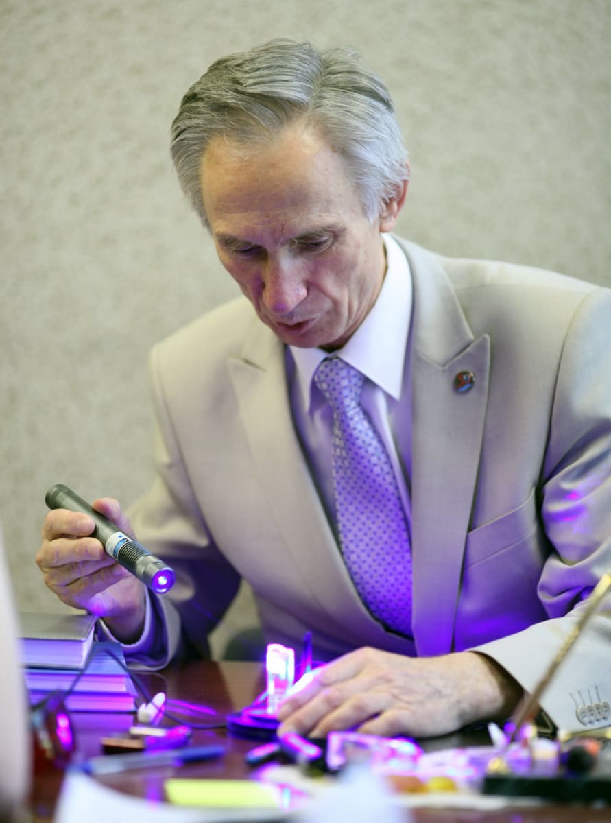 – Сфер применения – масса. Мы, к примеру, с помощью лазера можем считывать информацию, записанную нами же. У нас разработана технология многослойной объёмной записи на кристаллах-носителях. Лазерным излучением можно создать внутри кристалла квантовые системы, которые люминесцируют.