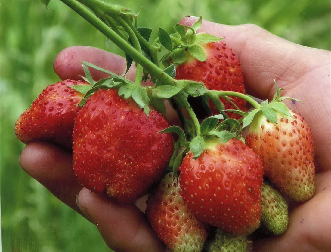 На сегодняшний день в моей коллекции много сортов земляники разного происхождения, в том числе и американской селекции. Это и обычные крупноплодные сорта – Хоней, Чендлер, Эльдорадо, Американский конкорд, другие, и ремонтантные, например Фристар. Увесистая гроздь спелых ягод едва умещается в ладони, а таких плодовых веточек за ягодный сезон формируется на кусте более десятка. Трибьют особенно привлекателен изысканным вкусом на закате осеннего урожая, как и Тристар, Женева. Есть и производные от них с улучшенными показателями – Алюба, Ампельная Женева.
