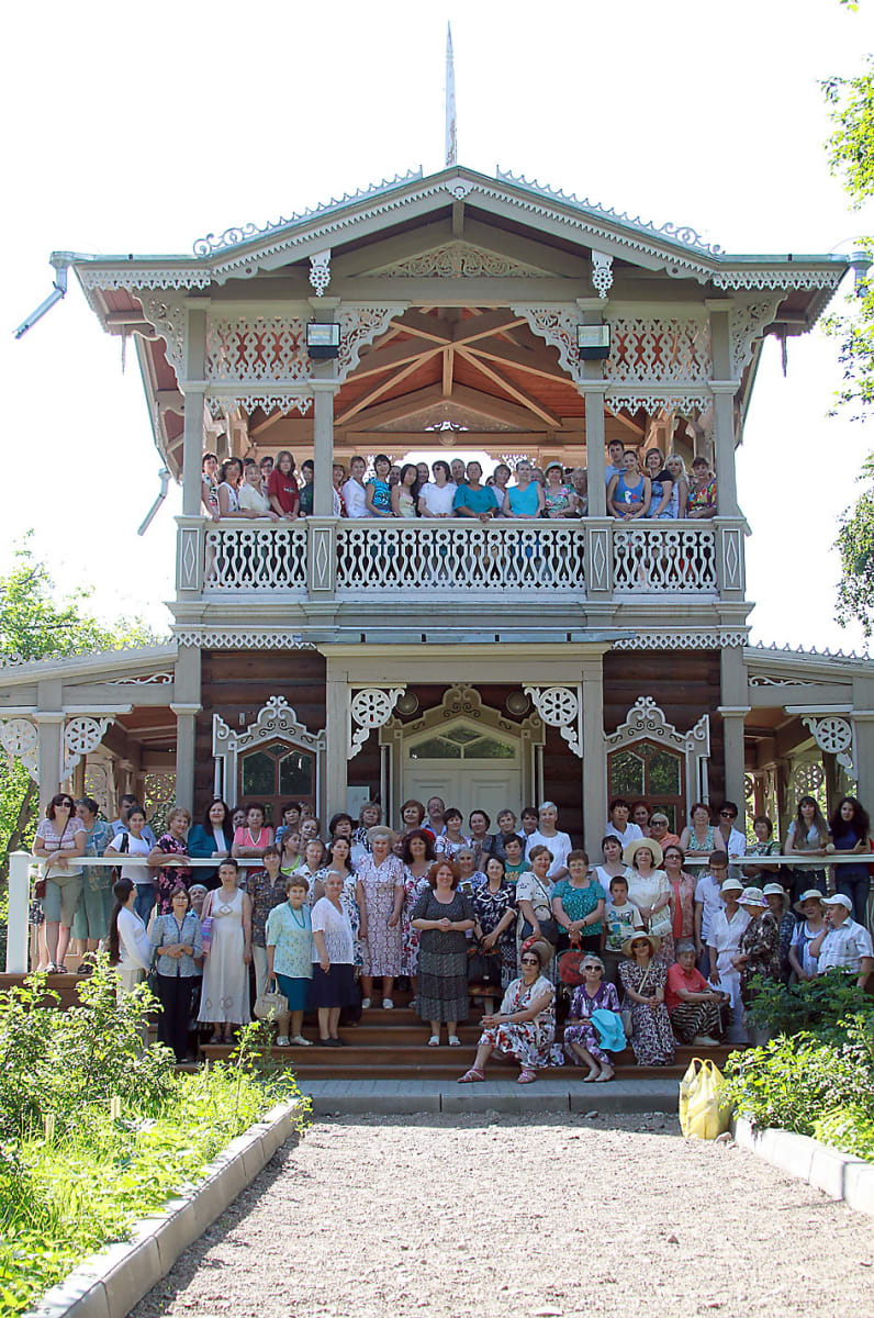 – А видите дату над входом? Какая цифра? – Пока мы перемещаемся по территории усадьбы, к пришедшим на экскурсию присоединяются новые люди, и Наталья Валерьевна берёт в руки мегафон.