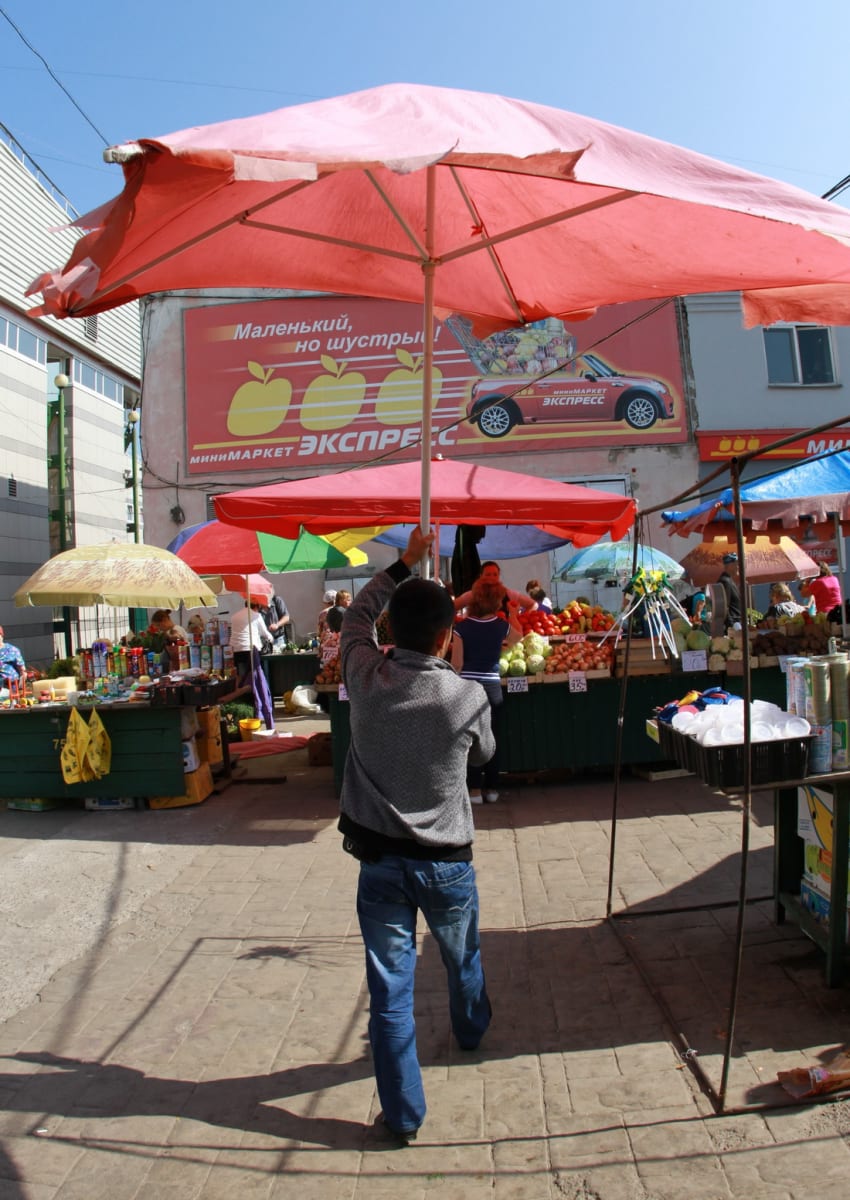 Последние несколько недель Центральный рынок Иркутска гудит, как разворошённый улей. В разгаре сезон уборки урожая, и на торговых рядах появляется всё больше желающих повыгоднее продать свои огурцы и ягоду. Каждый ищет себе место под солнцем. Пенсионеры отстаивают своё право торговать домашними овощами со скамеек. Такие же точно пенсионеры, только овощи у них китайские, выбирают места поближе к садоводам и огородникам.