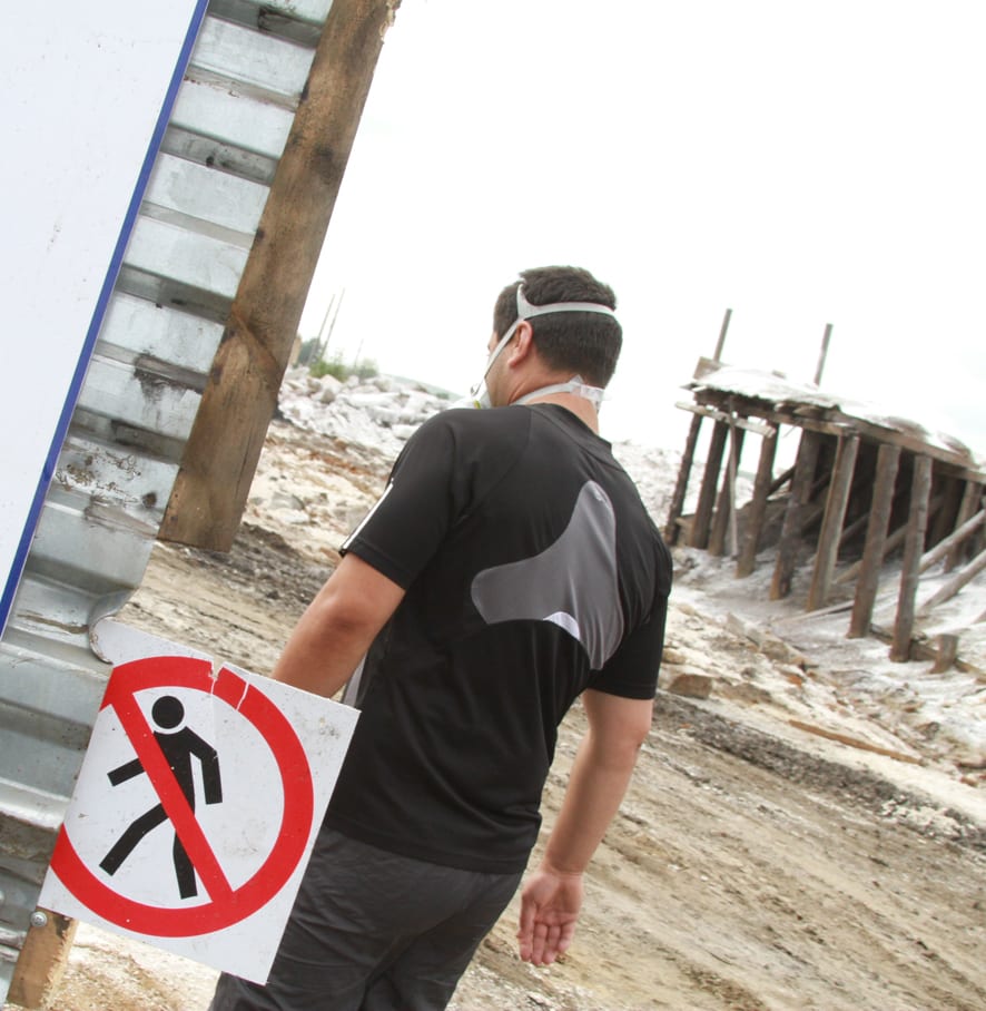«Самое главное – сапоги!» – предупредил мэр прибывших на площадку АМЗ журналистов. Вообще-то гостей просили взять с собой ещё головные уборы и защитные маски, но, как оказалось, это было необязательно. «Сам мышьяк относится к веществам второго класса опасности. Однако здесь концентрация ниже, поэтому и опасность меньше, – пояснил руководитель проекта рекультивации, профессор кафедры обогащения полезных ископаемых и инженерной экологии НИ ИрГТУ Андрей Богданов. – На все отходы есть паспорта. Согласно им у почвы, кирпича и железобетона АМЗ в основном четвёртый класс опасности. Больше всего заражены сами отходы – огарки. Это значит, что концентрация мышьяка превышает ПДК по коэффициентам токсичности раз в сто». Спасает и то, что отходы были предварительно обеззаражены известковым «молоком» – облиты раствором, который при засыхании дал защитную корочку, сдерживающую пыль. Ушло примерно 130 кг «молока» на тонну огарков и 18–20 кг на грунт и руины завода, уточнил Богданов.