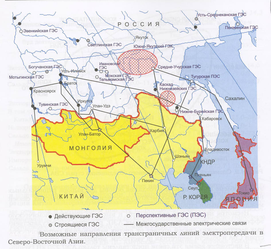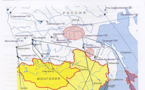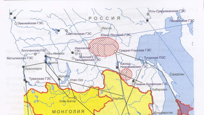 Крупномасштабный экспорт восточносибирского электричества возможен в Китай, Японию, Южную Корею, Северную Корею, Монголию (страны ранжированы по электроёмкости их внутренних рынков) при суммарной мощности выдачи до 20 гигаватт (для сравнения: мощность трёх ГЭС Ангарского каскада – 9 ГВт, всех электростанций ЕЭС России – порядка 225 ГВт), требуемые инвестиции – до 14 млрд. долларов, в том числе 1,5 млрд. – международная магистральная линия Братск – Пекин (2600 км, 600 киловольт постоянного тока, 3 ГВт).