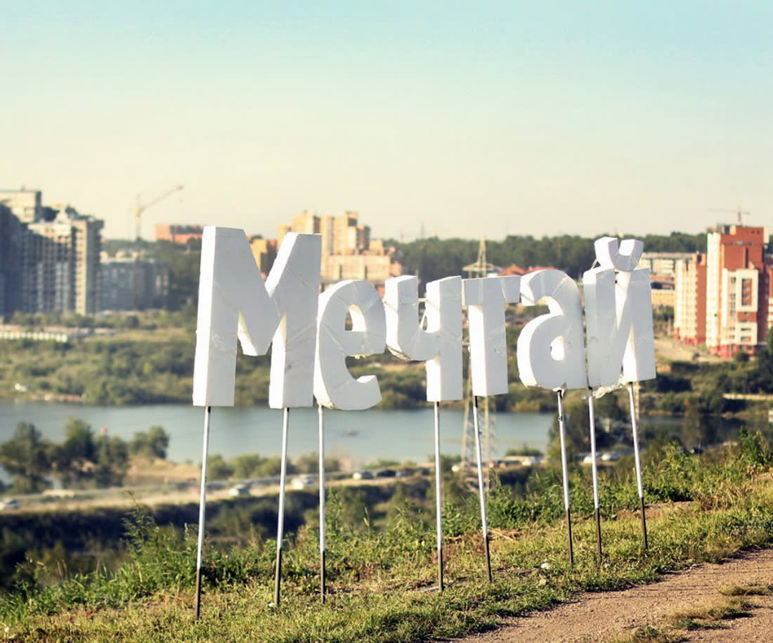 Этим летом Артур частично воплотил её – совершенно волюнтаристски, без участия административного ресурса поставил на правом берегу Ангары, около плотины ГЭС, объёмное слово «Мечтай!». Но оно простояло меньше недели, с субботы по четверг, после чего его тихо демонтировали. Это не отвратило Артура от идеи наглядной агитации проекта. С его лёгкой руки на ступенях, ведущих к Ангаре около памятника Александру III, появилось нарисованное краской сердце – по замыслу автора, там, внутри сердца, могли бы целоваться приезжающие на набережную молодожёны, да и вообще влюблённые парочки. Сердце пока держится…
