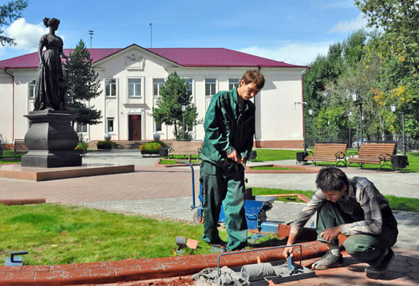 Иностранные туристы и журналисты ходят по улице Фридриха Энгельса в Иркутске. Первые приходят сюда, чтобы сфотографироваться на фоне памятника жёнам декабристов и заглянуть в Дом Европы, вторым показывают в действии последние разработки местных новаторов. Сегодня на 500-метровом участке улицы самая высокая в городе концентрация различных новых технологий, которые мирно соседствуют с деревянной застройкой. Главный по инновациям, председатель комитета по экономике администрации города Алексей Альмухамедов, пришёл сюда в прошлую пятницу с журналистами. Сначала он обратил внимание прессы на бордюр в сквере княгини Волконской. Прямо на глазах у собравшихся его выкладывают двое рабочих: один с помощью специальной бордюроукладочной машины придаёт нужную форму, второй – фактуру состаренного кирпича. «Несколько дней назад через сквер проехал грузовик, часть бордюрного ограждения разрушилась, приходится ремонтировать», – рассказывает директор по развитию компании «Мастербордюр» Антон Ефимов.