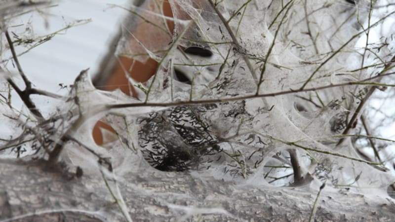 Можно смывать гусениц, гнёзда сильной струёй воды или снимать механическим путём, если деревья не высокие.