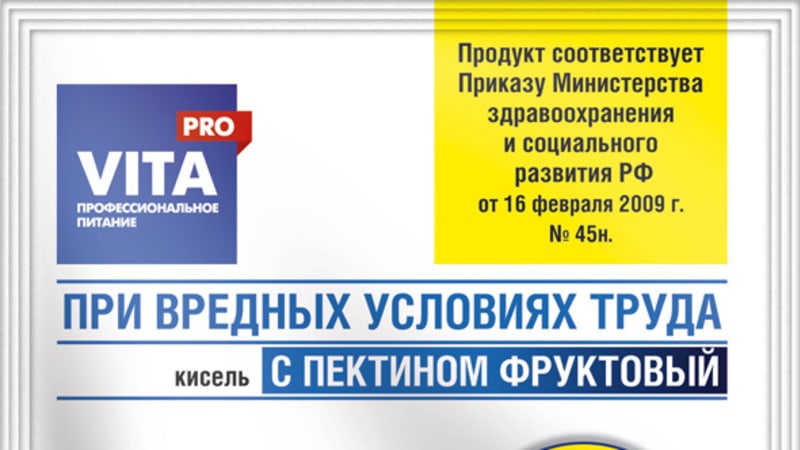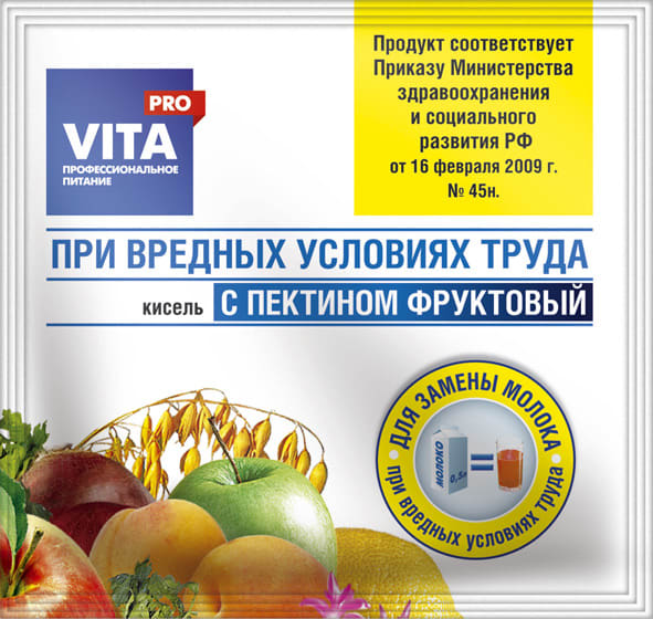 Организм человека должен регулярно получать целый комплекс микронутриентов в количестве, соответствующем физиологическим потребностям. Обследования различных групп населения, проведённые Институтом питания РАМН, выявили витаминный дефицит у жителей России. Около 80–90% населения испытывает недостаток витамина С (до 80%), 40–80% населения – витаминов В1, В2, В6, фолиевой кислоты. Чтобы обеспечить суточную норму потребления витамина С, нужно съесть 10 кг яблок или 5 лимонов; чтобы обеспечить организм суточной нормой витаминов В1 и В6, нужно употребить в день 500 г мяса или 1 кг чёрного хлеба. Важные защитные и детоксикационные свойства витаминов обосновывают целесообразность использования обогащённых ими продуктов питания, в частности диетических киселей «VitaPRO», в профилактическом питании работников, занятых во вредных условиях труда.