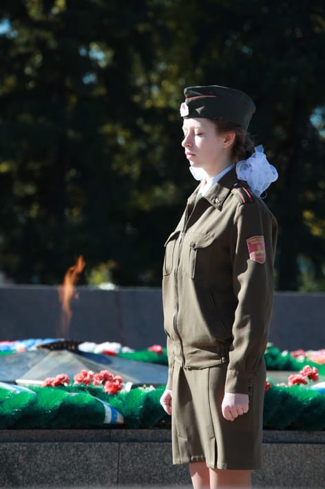 Разводящая Саша Каргина на пост заступила во второй раз. «В первом карауле я была юнармейцем, в этот раз решила стать разводящей, рассказала она. – Я здесь потому, что считаю: мы должны чтить героев Великой Отечественной войны, ведь они подарили нам будущее».