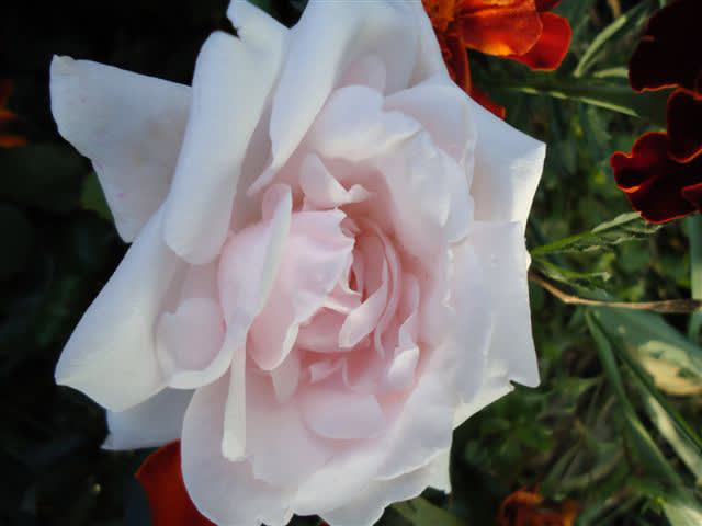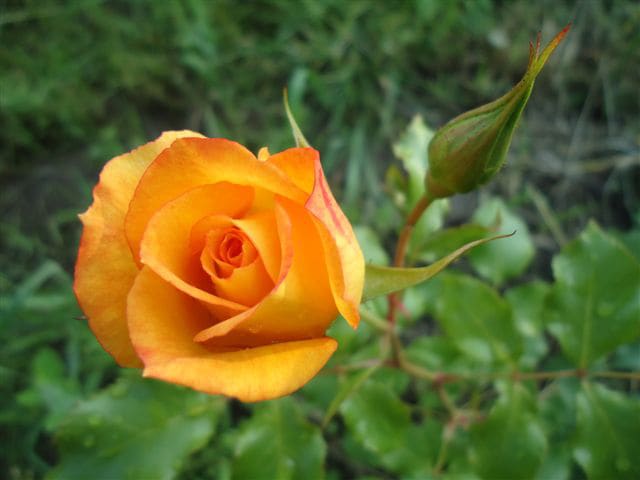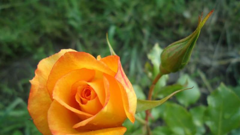 У розы Ругельда, которая после трёх лет зимовки расцвела впервые, бутон совершенной формы, как у чайно-гибридной розы, раскрылся в жёлто-оранжевый крупный полумахровый цветок, края которого со временем стали приобретать яркий малиновый цвет, а центр – бледнеть. К концу цветения это была белая роза с красной оторочкой – вот такие метаморфозы.
