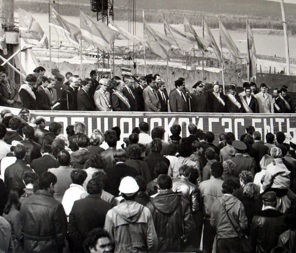 Решение о строительстве четвёртой станции Ангарского каскада ГЭС было принято ещё в шестидесятые: 26 декабря 1964 года по решению Государственной экспертной комиссии Госплана СССР приступили к составлению проектного задания для Богучанки. Почти семь лет спустя,  1 февраля 1971 года, было издано постановление Центрального комитета КПСС и Совета министров СССР «О мерах по дальнейшему комплексному развитию в 1971–1980 годах  производительных сил Красноярского края», где говорилось о строительстве «мощных электростанций», использующих «высокоэффективные гидроэнергетические ресурсы рек Енисея и Ангары и угли Канско-Ачинского бассейна, и создании на их основе крупнейшей базы электроэнергетики и электроёмких производств». Одной из таких ГЭС должна была стать Богучанская, строительство которой, согласно документу, было намечено на 1976 – 1980 годы. Однако эти сроки не были соблюдены: технический проект станции с девятью гидроагрегатами мощностью по 333 МВт и возможностью установки ещё трёх генераторов был утверждён только в декабре 1979 года, а строить её начали 18 июня 1980 года. Когда 17 апреля 1982 года в основные сооружения БоГЭС был уложен первый куб бетона, речь шла о том, что в 1984 году будет перекрыта Ангара, а к 7 ноября 1987 года – 70-летию Великой Октябрьской революции – запустят первые гидроагрегаты. Однако в дальнейшем сроки ввода станции в строй неоднократно переносили, а в 1992 году строительство и вовсе было прекращено. Возобновить его пытались в 1994 году, когда вышло распоряжение правительства РФ, предусматривающее запуск двух гидроагрегатов в 1997 году. Этим планам тоже не суждено было сбыться.