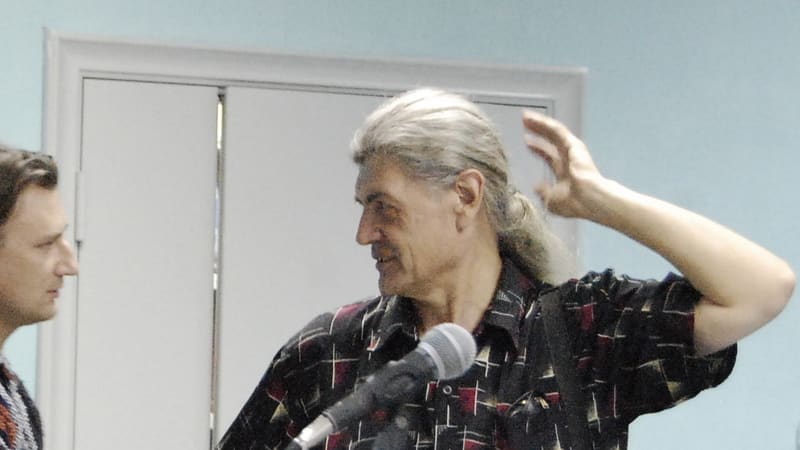 Весь вечер на сцене были «два седых и один бритый». Кроме Мишкина, оседлавшего ударную установку, играли двое. Его старый приятель по «Дребезгам», коренной «бродовец» гитарист Саня Щукин – как полагается, закончивший 11 школу, учившийся в университете на физмате, живший в «Доме связи» на Марата и в своё время игравший в известных сейчас только ценителям группах медовском «Мадригале» и «Звуки времени» из Шелехова. Бритый наголо, с арийским крепким черепом и в больших тёмных очках, саксофонист Вениамин Стуков больше походил на «братка» из 90-х, чем на музыканта 70-х. Тем не менее происходил из династии известных иркутских музыкантов, закончил местное училище искусств и получил высшее музыкальное образование во Владивостоке, в Академии культуры.