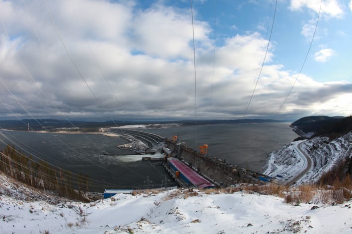 Примерно через час-полтора пути показывается и сама Богучанская ГЭС. Для того, кто видел не одну гидростанцию, на первый взгляд, ничего нового: те же бетонная и каменно-набросная плотины. Длина первой, для любителей точных цифр, составляет 828,7 м, второй – 1861,3 м. Однако некоторые технические решения, значительная часть которых скрыта от глаз сторонних наблюдателей, заслуженно считаются уникальными. Например, расположенная в теле каменно-набросной плотины диафрагма из литого асфальтобетона. Или находящаяся под плотиной цементационная завеса, предотвращающая фильтрацию воды через её основание. Во второй раз в российской гидроэнергетике после Бурейской ГЭС для передачи электроэнергии было применено не открытое, а комплектное распределительное устройство – КРУЭ.