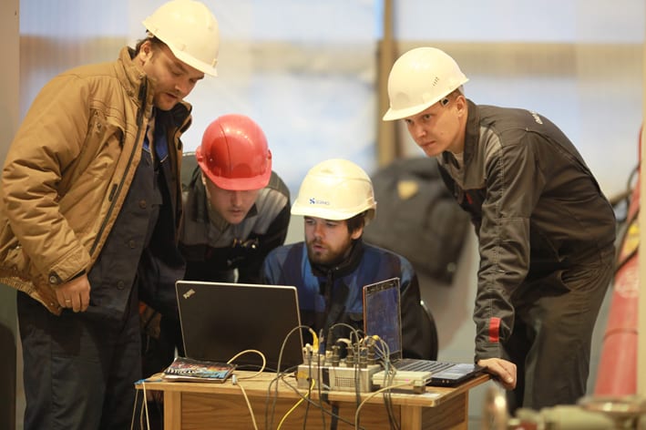 Торжественную церемонию при-урочили к памятной дате – 25-летию со дня перекрытия Ангары в створе Богучанской ГЭС. На кнопку, запустившую генератор, одновременно нажали председатель правления ОАО «РусГидро» Евгений Дод и первый заместитель генерального директора ОК «РУСАЛ» Владислав Соловьёв – представители двух компаний, на паритетных началах строящих станцию и Богучанский алюминиевый завод. Постепенно турбина начала раскручиваться, и в тот момент, когда она достигла номинальной частоты вращения, загорелась красная лампа, сигнализирующая о том, что агрегат заработал. Тут же к нему устремились ветераны строительства БоГЭС, дедовским способом – поставленной на ребро монетой – решившие проверить отсутствие вибраций на машине. И ни одна из водружённых на крышку гидроагрегата десятирублёвок не пошатнулась.