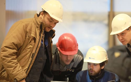 Догадка верна лишь отчасти: мы направляемся в Кодинск, тогда как нашим соседям ещё предстоит переехать плотину четвёртой по счёту ГЭС Ангарского каскада и добраться до площадки, на которой возводится Богучанский алюминиевый завод. Нас же интересует Богучанская ГЭС, на которой готовится к технологическому запуску третий гидроагрегат. Дорогу до неё с полным на то основанием можно назвать экстремальной: из 180 километров лишь три десятка покрыты асфальтом, к тому же лёг первый снег, и сразу становится очевидным назначение ярко-красных ящиков, стоящих на обочине вдоль крутых подъёмов и спусков – песком из них посыпают трассу. Отдельные приметы большой энергетической стройки видны ещё по пути в Кодинск: в нескольких местах тракт пересекает ЛЭП на новых опорах, входящая в схему выдачи мощности Богучанской ГЭС, а один раз встречается грузовик «Урал» в сопровождении пассажирской «Газели» с символикой Федеральной сетевой компании Единой энергосистемы России, которая эту схему строит. Когда дорога выходит к берегу Ангары, можно догадаться о том, что выше по течению заполняется водохранилище крупной ГЭС: отметки на берегах и выпирающие по фарватеру островки красноречиво говорят о том, что река обмелела.