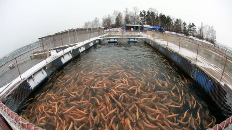 – Поначалу нам чинили препятствия представители иркутской рыбинспекции. Они утверждали, что форель – это хищник, который прорвётся в русло Ангары и начнёт теснить местных рыб. Но мы к этому были готовы: садки у нас крепкие, а летом, когда рыба активная и может перепрыгнуть край садка, мы их поднимаем на метр. Но нужно сказать, что форель – рыба стайная, она держится вместе, только тогда она активная. Пойдёмте, я вам покажу.