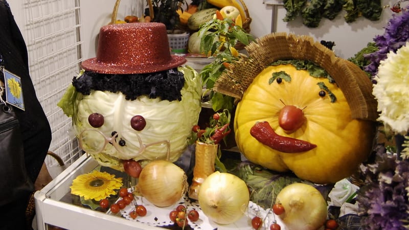 Оформление у всех клубов разное, цель одна – показать всё, чего достигли за сезон. А достигли многого: огромного урожая всех культур. Хороши луки, капусты, перцы, томаты, кабачки, тыквы, картофель. И всего этого завалы, можно было освоить гораздо большие площади. Поработали дизайнеры. Различные диковинные фигуры людей, животных украшали витрины. Материалом служили расписные тыквы, кабачки, корнеплоды. Так, у площадки шелеховского клуба гостей встречали по-гоголевски живописные мужик с бабой, монисто из маленьких тыкв.