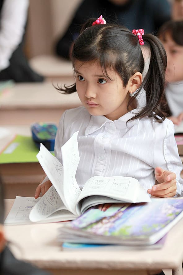 В 1 «д» классе школы №9 начинается очередной урок. Сидя на последней парте, трудно сразу заметить что-то необычное: дети как дети, единая форма одежды, разноцветные тетрадки и фломастеры на партах. Потом обращаешь внимание на аккуратные стрижки первоклашек и осознаёшь, что на весь класс в 32 человека только одна блондинка, девочка Настя. Все остальные затылки, аккуратно стриженные или с косичками – жгуче-брюнетистые. А потом учительница Нина Петровна начинает занятие, и уже трудно понять, где находится эта школа: