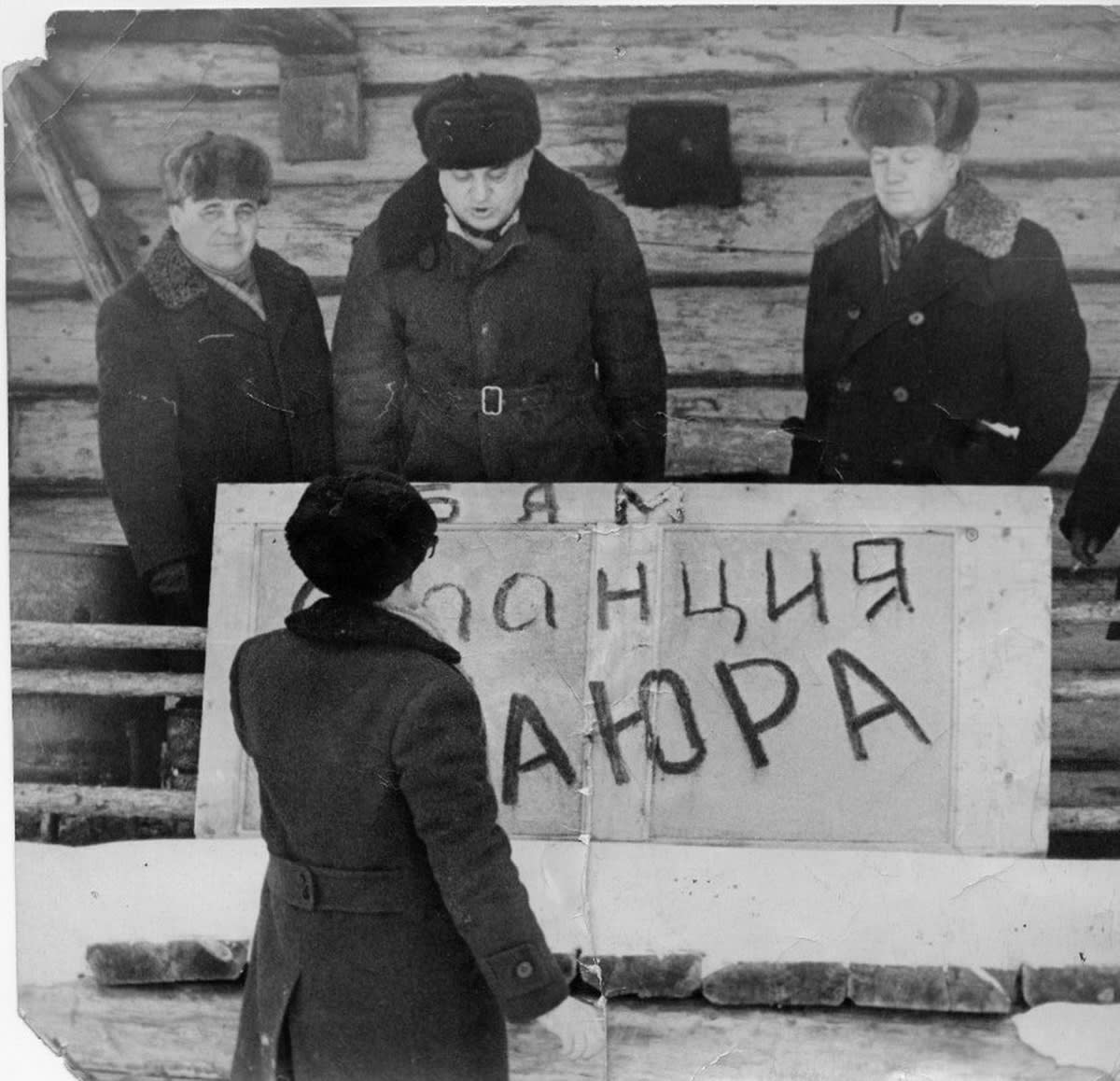 – Хотелось поприсутствовать там и там, увидеть своими глазами место будущей первой станции на Западном участке БАМа и первые метры зимника к ней, – вспоминал в разговоре со мной Пётр Лосев. – Всё решил жребий: Кашевскому выпал зимник, мне – вертолёт. Здесь уместно сказать о третьем члене нашей пресс-группы. Редакция нам фотокора не выделила. Тем не менее мы его нашли в Железногорске. Им стал Валентин Перфильев – собкор Братского телевидения. Звоним ему: «Хочешь «влипнуть» в историю о начале Большого БАМа?» Он в ответ: «У меня денег на такие прожекты нет». Соглашайся, говорим ему, берём на своё довольствие. Уломали. И очень даже не зря. Он сумел (и не без мастерства) запечатлеть и переход через Лену, и посещение руководителями стройки будущей станции Таюра. Потом эти снимки использовали многие издания.