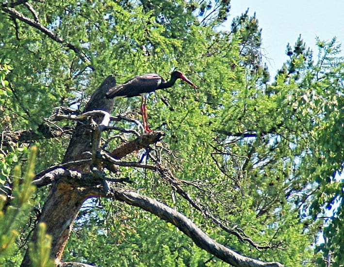 Краснокнижный чёрный аист обитает в Зулумайском и некоторых других заказниках