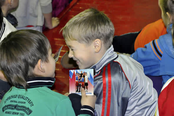 Появление спортсмена вызвало тихие возгласы присутствующих женщин. Они как будто не верили в земное происхождение Валуева и с удивлением перешёптывались: «Смотри-ка, кушает!», когда он откусывал от каравая, поданного девочками в павловопосадских платках. Мёрзнуть никому не хотелось, поэтому вступительная речь на крыльце была короткой. Однако внутри Николаю Валуеву уже не дали спуска. Если взрослые старались сдержанно реагировать на присутствие такой величины, то детей при виде любимого героя пришлось успокаивать, чтобы залезали на гостя не все сразу, а хотя бы по одному. «Автографов хватит на всех. Боксёры, сохраняйте спокойствие!» – просила в микрофон ведущая, но их было не удержать.