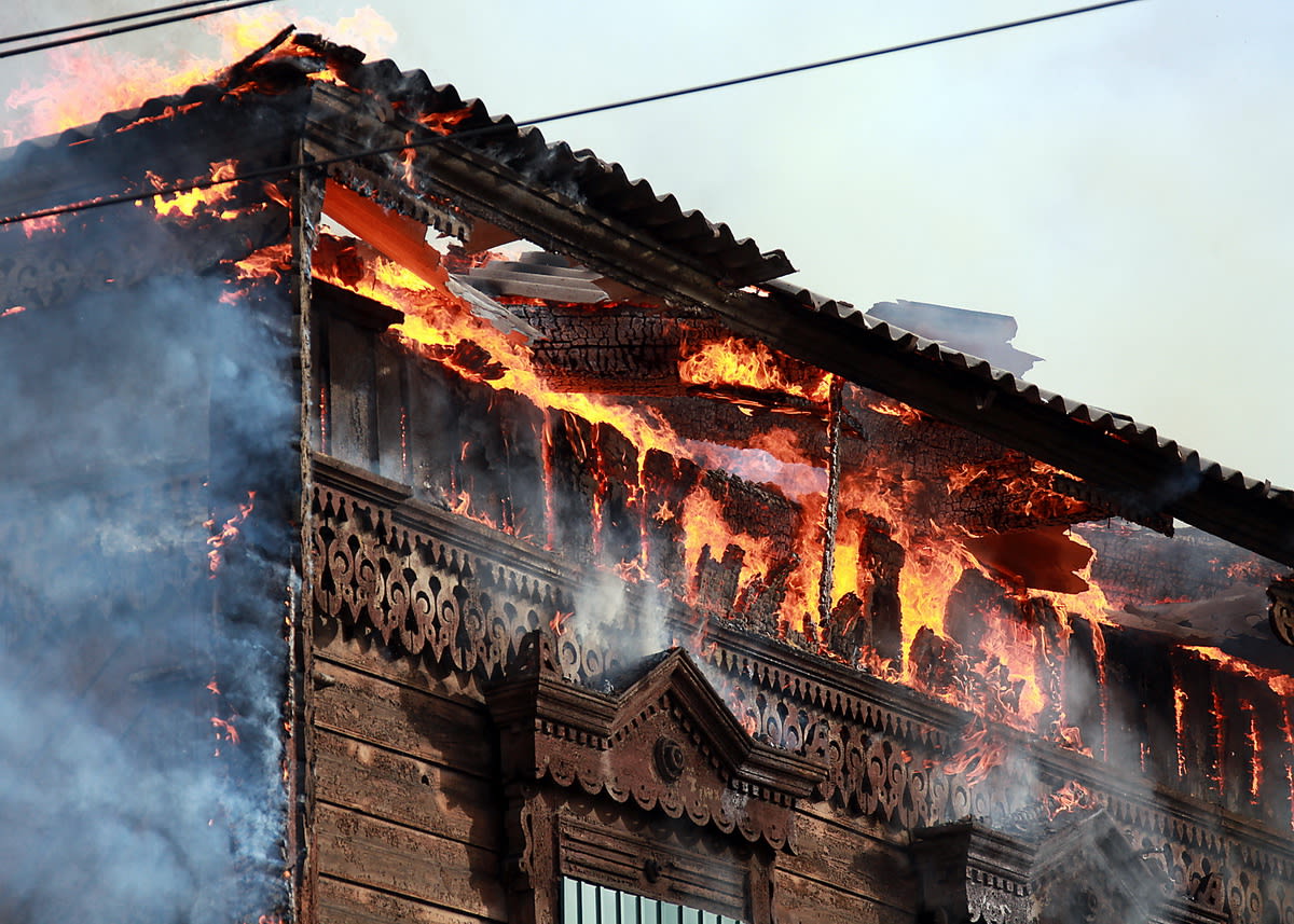 Не прошло и двух дней после объявления особой готовности, открытый огонь вспыхнул в центре Иркутска. Загорелся двухэтажный доходный дом 19 века на улице Свердлова, который считается памятником архитектуры столицы Приангарья. Сообщение о возгорании на пульт регионального МЧС поступило в шесть вечера. На момент прибытия спасателей на место кровля здания была полностью охвачена огнём, горели и перекрытия между этажами. В результате пострадало 200 квадратных метров здания, погибших людей нет.