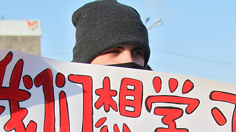 К митингу собравшиеся подготовились. Кто-то пришёл с термосом с горячим чаем, кто-то – с плакатом. Одни надписи на растяжках предупреждали: «За нашим вузом последует ваш», другие призывали: «Не будьте равнодушными – помогите спасти педагогический», третьи предлагали поразмышлять над риторическими вопросами вроде того: «Какое будущее ждёт образование Иркутска?» и так далее. Хотя Артур говорит, что свой плакат он специально не готовил, нарисовал сегодня.