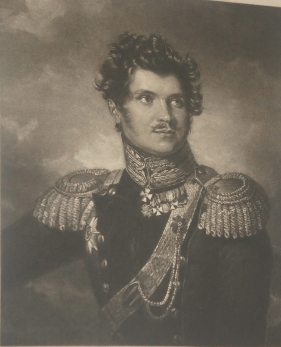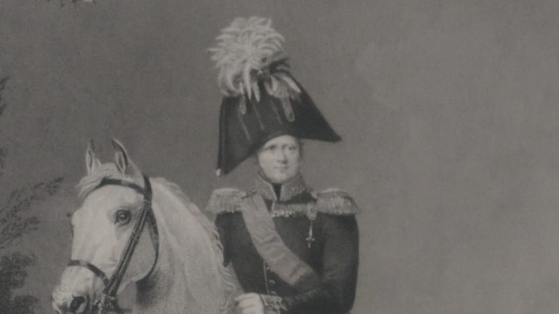 На выставке можно увидеть знаменитый конный портрет Александра I, выполненный гравёром Доле с картины Франца Крюгера, который был придворным художником при дворе прусского короля Фридриха Вильгельма III. В 1832 году Франц Крюгер был приглашён в Петербург для работы над портретом Александра I для Военной галереи 1812 года в Эрмитаже. За этот портрет Александра Благословенного – великолепный, вошедший во все хрестоматии и учебники – живописцу заплатили 16000 рублей ассигнациями. А также Крюгеру отвели помещение в Зимнем дворце, предоставили право бесплатно обедать за придворным столом в Зимнем и загородных дворцах, выделили придворный экипаж… 13 апреля 1833 года последовал указ Николая I: «Возвращающемуся в Берлин Крюгеру повелеваю выдать из Кабинета на путевые издержки тысячу червонцев без вычета». Наследник, цесаревич Александр Николаевич, пожаловал живописцу бриллиантовый перстень.