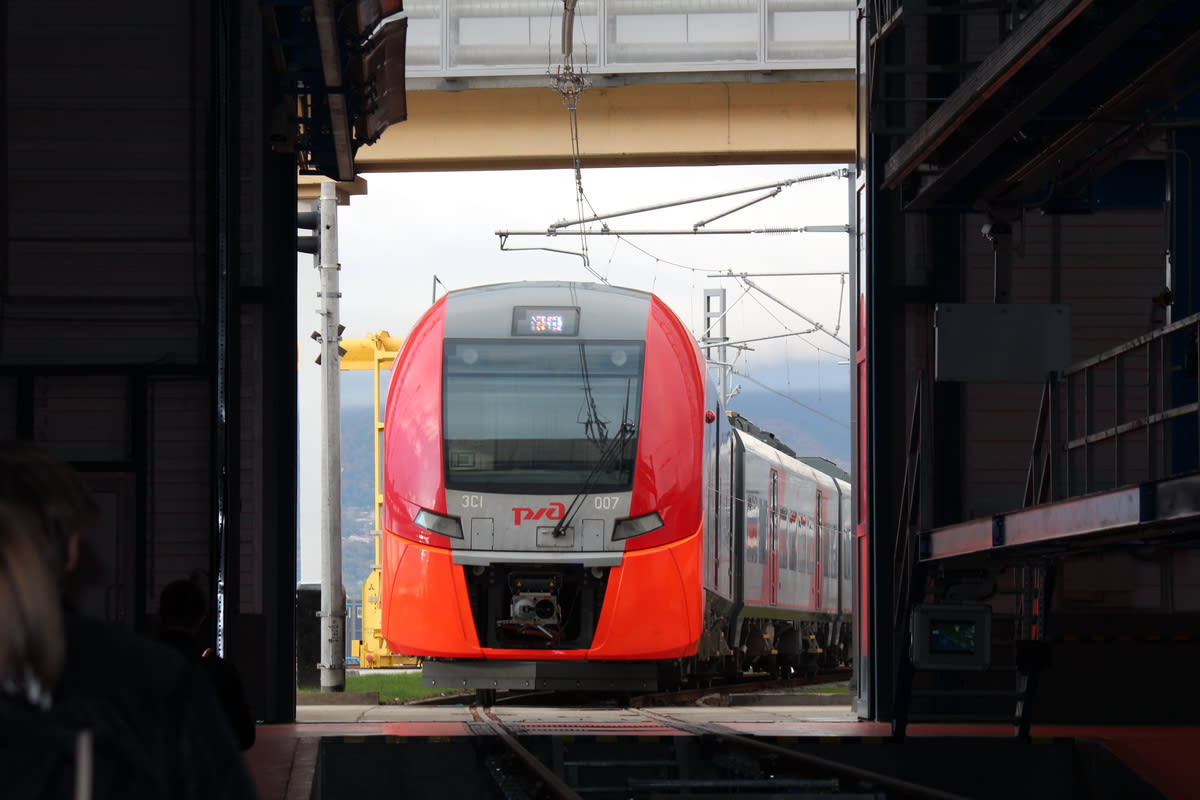 Неторопливая мотриса доставила нас в депо Адлера, одну из баз для знаменитых электропоездов Siemens Desiro, которые в России носят название «Ласточка». 38 таких поездов, развивающих скорость до 160 км в час, будут обеспечивать подвоз в город и к объектам Олимпиады. Депо пока в стадии пусконаладки, во время Олимпиады график его работы будет по требованию МОК очень жёстким: поезда будут обслуживаться с 1 часа ночи до 4 утра. Всё остальное время все 38 поездов должны быть на ходу. «Ласточка» – не электричка, это высококомфортный поезд, даже биотуалеты есть. На таком поезде до Красной Поляны – 30 минут, но пока «Ласточки» проходят лишь обкатку на участке Санкт-Петербург – Москва и на ряде испытательных колец, к примеру на Северокавказской дороге, бывали они, конечно, уже и в Сочи.