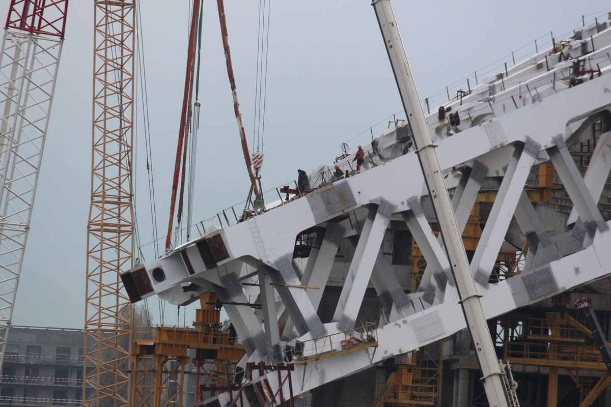 Рабочие ждали нас, ждали и снова начали монтаж, теперь никто посторонний внутрь не войдёт. В пешей доступности – арена «Шайба», Дворец зимнего спорта «Айсберг» (куда спустя два дня пустили Путина) и будущий центральный стадион Олимпиады «Фишт». Сейчас он больше похож на скелет гигантского динозавра. Все арены, кроме центрального стадиона, будут готовы в конце 2012 – начале 2013 годов, пообещал застройщик «РогСибАл», входящий в строительный дивизион компании «Базовый элемент». Цену объектов нам назвать отказались, сославшись на то, что это компетенция Минрегиона. Но пояснили, что после всё это станет коммерческой недвижимостью.