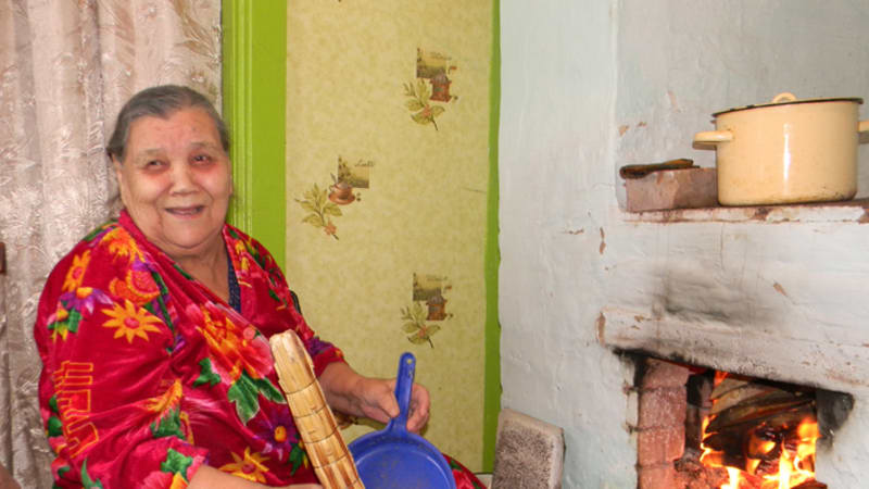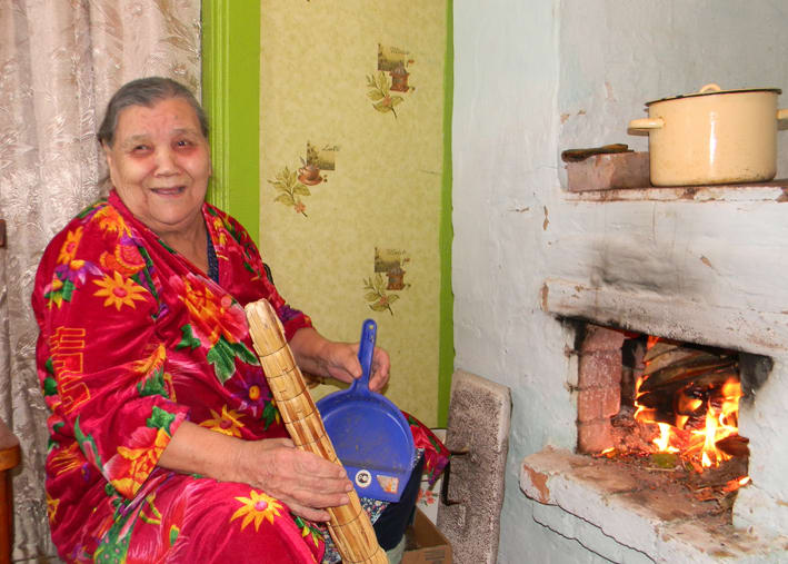 Галина Витальевна уже была в Караме и точно знает, к кому нам нужно идти. Поэтому нельзя назвать везением встречу с внучкой купца Данилы Сафонова, Ульяной Саввичной Сафоновой, 1928 года рождения. Она словно являет собой живую историю села.