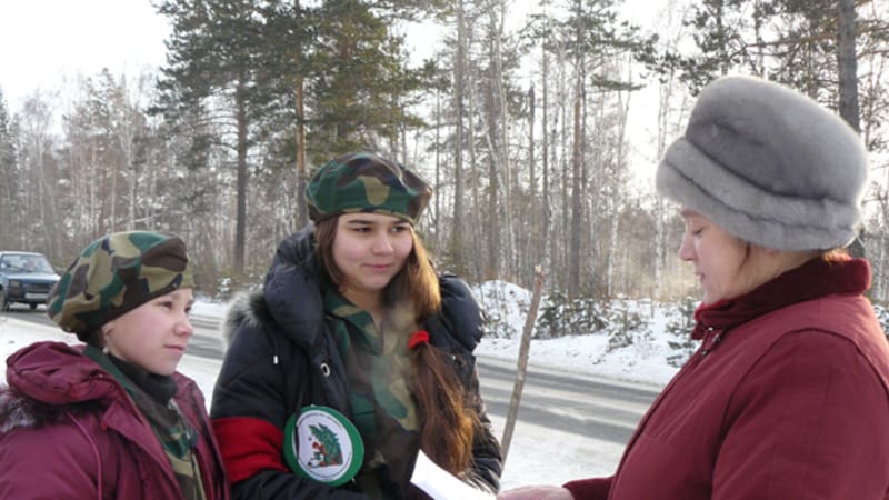 В эти морозные дни лесники совместно со службой ГИБДД проводят операцию «Ель» в рамках кампании противодействия незаконным рубкам. А рядом со взрослыми товарищами на посту оказались и наши старинные знакомые, ребята из школьного лесничества «Багульник», со своим руководителем Любовью Хилхановой. Правда, летом, когда мы вместе сеяли семена сосны на опытном участке станции юных натуралистов, школьное лесничество называлось «Лесовик».