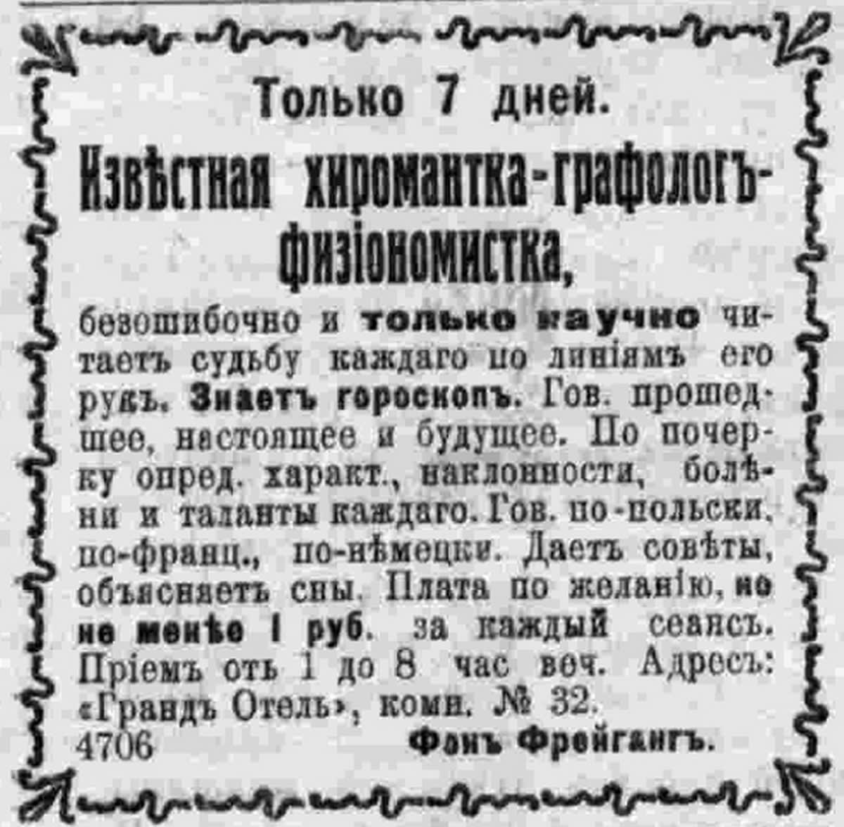толкователей снов обычно наблюдалось в Иркутске с приходом зимы, когда у обывателя начинался досуг поневоле. Раскидывая свои сети, гастролёры