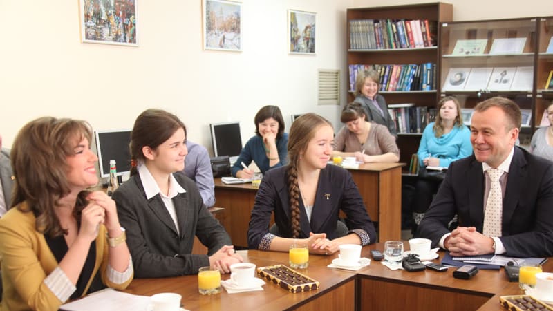 В полдень 20 декабря в конференц-зале лицея ИГУ разливали горячий чай по кружкам и ждали гостей. Чаепитие, которое официально называлось «встреча губернатора Иркутской области Сергея Ерощенко с представителями талантливой молодёжи», должно было начаться с минуты на минуту. Сама талантливая молодёжь в это время как раз рассаживалась за столом. Руководить процессом пытались суетившиеся вокруг взрослые: они то и дело спрашивали, у всех ли есть места, и тут же предлагали: «Сашу посадим туда, Виктора Стефановича (министр образования Иркутской области Виктор Басюк. – «Ступеньки») – туда, девочек – поближе к губернатору».