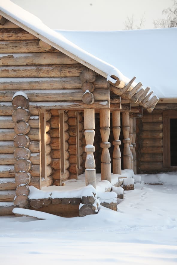 Перед Новым годом мы решили немного нарушить традиции «Прогулок…» и выбраться за пределы Иркутска. На 47-м километре Байкальского тракта, где находится архитектурно-этнографический комплекс «Тальцы», всё застыло в морозной дымке. Кажется, звуки здесь тонут в непривычно белых после города сугробах. Но это ощущение улетучивается, когда от Илимского острога слышится звук бензопилы и других инструментов.