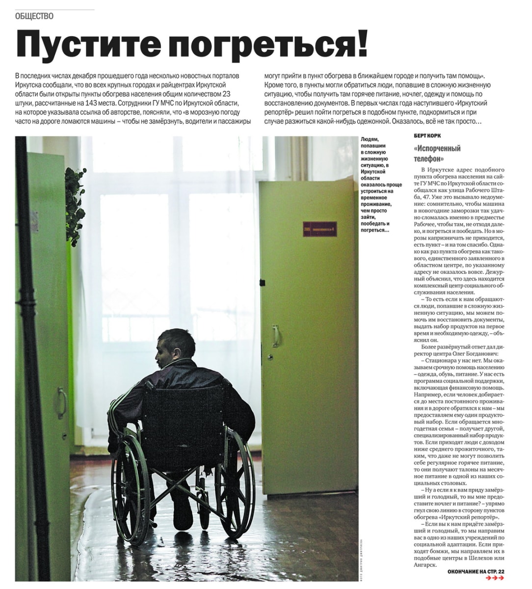 Основной контингент пунктов обогрева – бомжи и алкоголики. Извращённая мораль современного «цивилизованного общества» предполагает жалость и сострадание к этой публике. Но все ли униженные и оскорблённые этого заслуживают? Как они стали бомжами, они все родились прямо на тротуаре? По этому поводу хорошо сказано в книге В.В. Воробьёва-Брусилова «Размышления дилетанта»:
