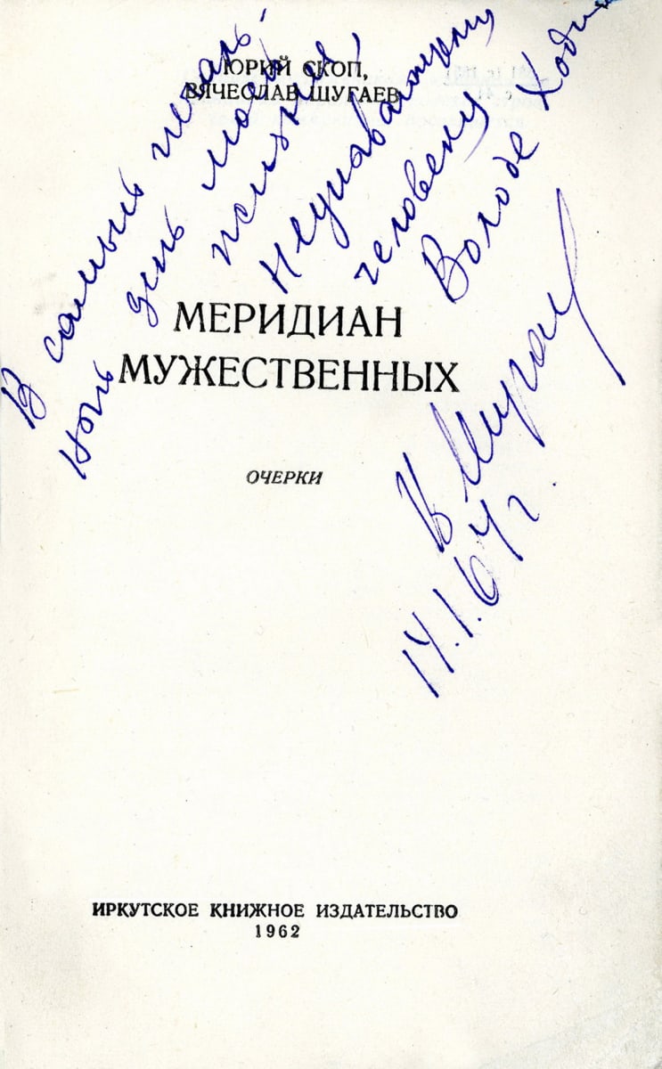 Вслед явились другие очерки из других мест – свежие, раскованные, не похожие на остальные материалы в «Восточно-Сибирской правде». Их охотно перепечатывают центральные издания – газеты «Советская Россия», «Литература и жизнь» (впоследствии «Литературная Россия»), журнал «Молодая гвардия». И как итог – в Иркутском книжном издательстве выходит первая совместная книга молодых авторов «Меридиан мужественных».