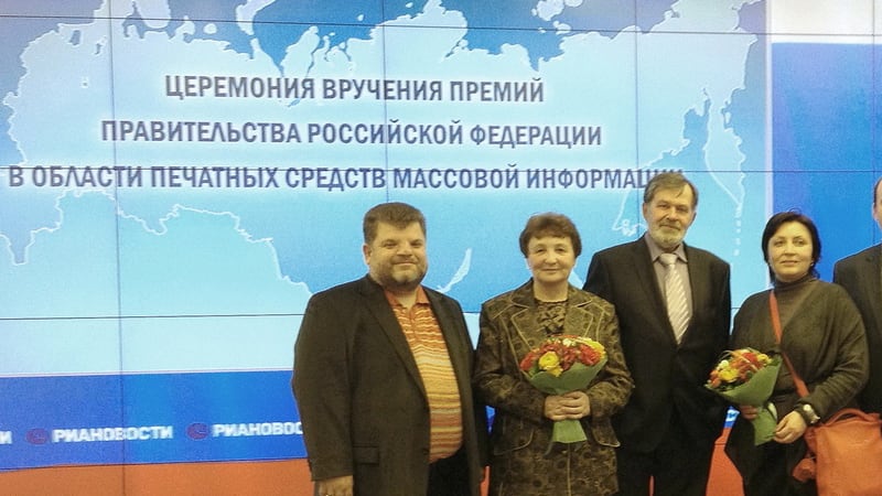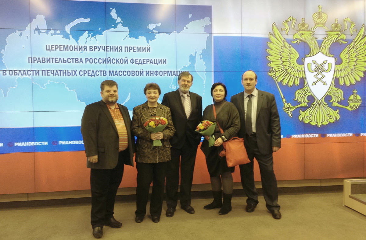 29 января министр связи и массовых коммуникаций РФ Николай Никифоров вручил знаки лауреатов премии Правительства Российской Федерации в области печатных средств массовой информации за 2012 год. Премия является ежегодной и вручается с 2005 года. Награждение лауреатов премии состоялось в Москве на площадке РИА «Новости».